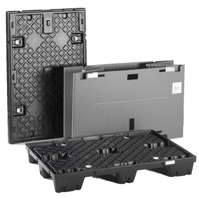 As paletes e as tampas encaixam-se entre si e as paredes são encaixadas na palete (quatro unidades encaixáveis substitua uma caixa- -palete montada).
