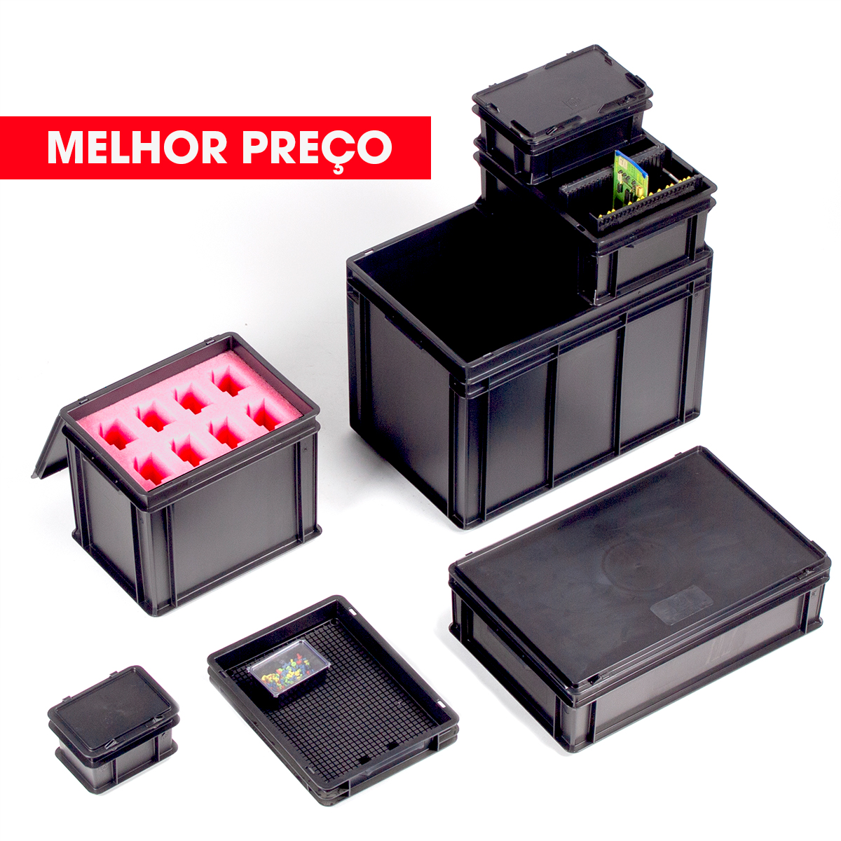 product(s)Todos os recipientes e malas da nossa gama podem ser fornecidos na versão de segurança ESD, frequentemente a partir do nosso stock. Os nossos recipientes e malas de segurança ESD são permanentemente antiestáticos. É cada vez maior a percentagem de produtos que funciona com a ajuda de sistemas eletrónicos sensíveis (carros, por exemplo) e evitar danos devido à eletricidade estática é mais barato do que uma reparação.