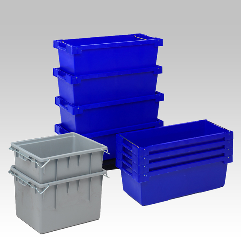 Caixas com alças encaixáveis / empilháveis sóbrias, frequentemente utilizadas para transportar computadores e monitores. Praticamente indestrutíveis, constituem uma garantia para o transporte em toda a segurança dos objectos de valor. Ganho de espaço de 50% quando vazio.
