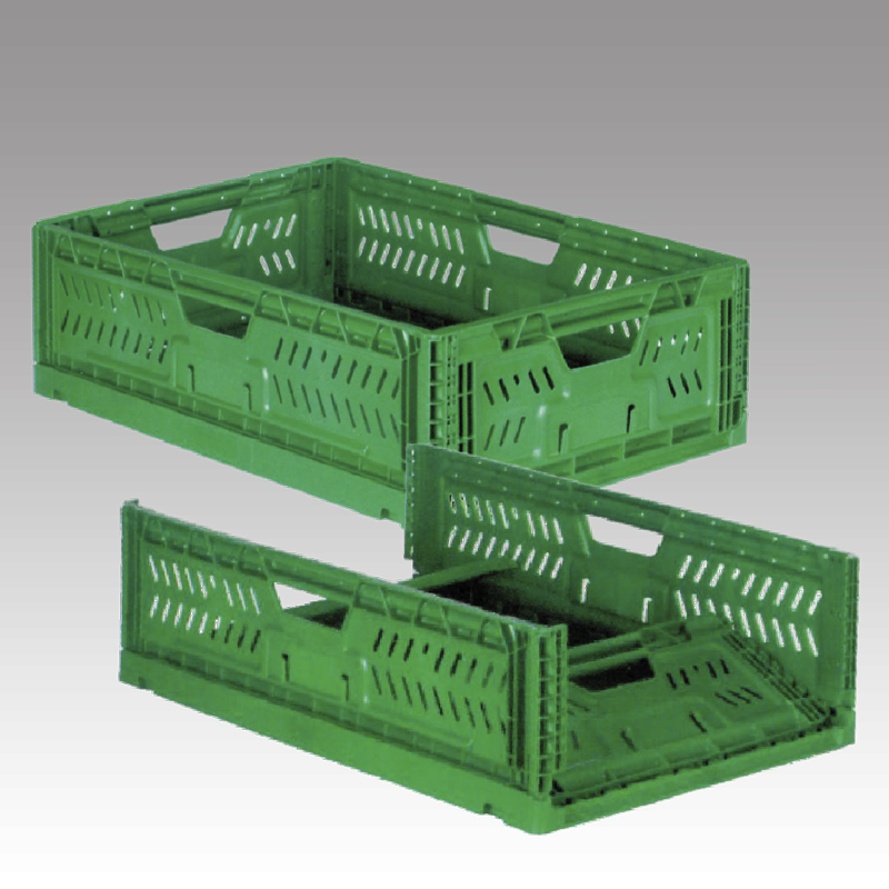 As caixas dobráveis são caixas cujas paredes podem ser dobradas. Uma vez vazias podem resultar num ganho de espaço de 70%. Estas caixas são fabricadas em plástico praticamente inquebrável e são resistentes ao gelo e ao calor. Estas caixas são empilháveis entre elas e também se adaptam à nossa gama de caixas empilháveis Norma Europe.