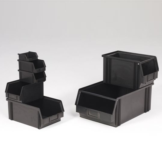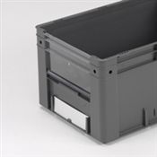 Punhos espaçosos, maiores dimensões, acessórios como inserts para caixas, tampas transparentes para parte frontal das caixas e suportes para etiquetas, tornam as caixas empilháveis Euro-norma uma alternativa completamente coberta para as clássicas “caixas-de-bico”. As colunas de canto reforçadas e a estrutura perfilada do fundo permitem uma armazenagem até 50 quilos por peça, perfeitamente encaixáveis.